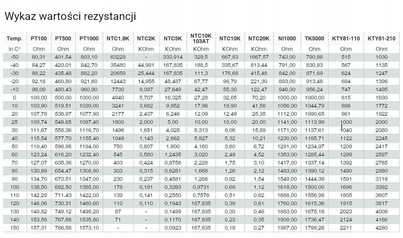 • beta (25/85) stała - 3990K ± 1%